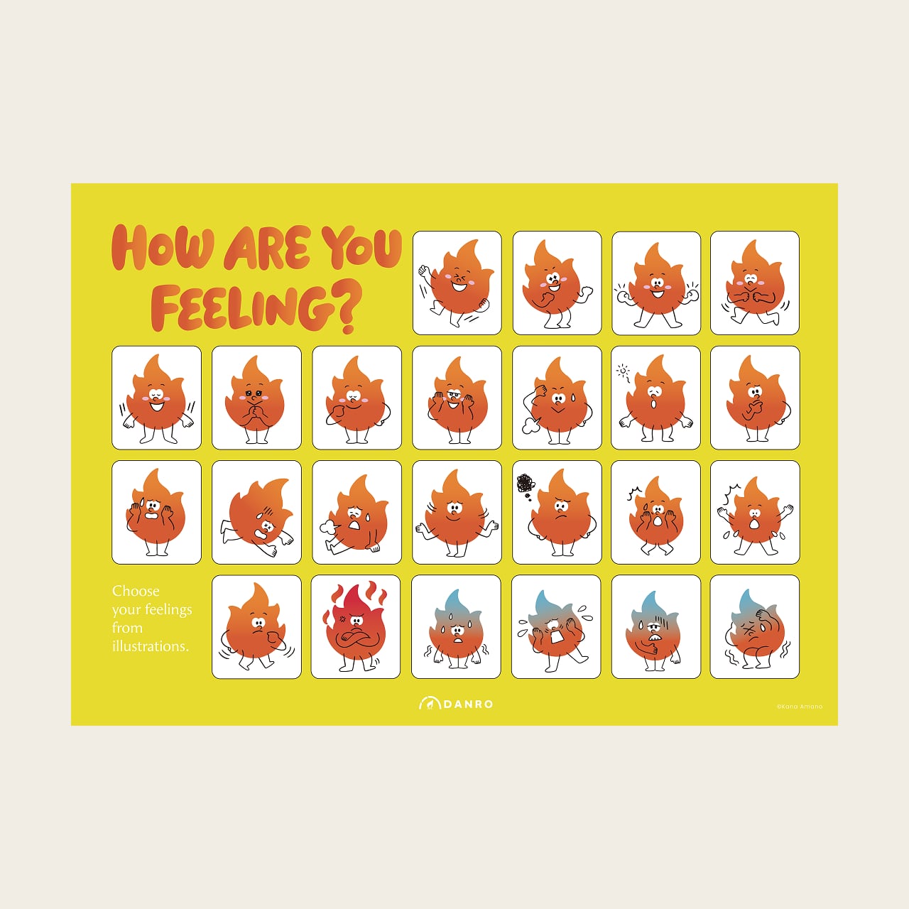 【24種類の感情を表したDanbee(DANRO公式キャラクター)のオリジナルお風呂用ポスター】